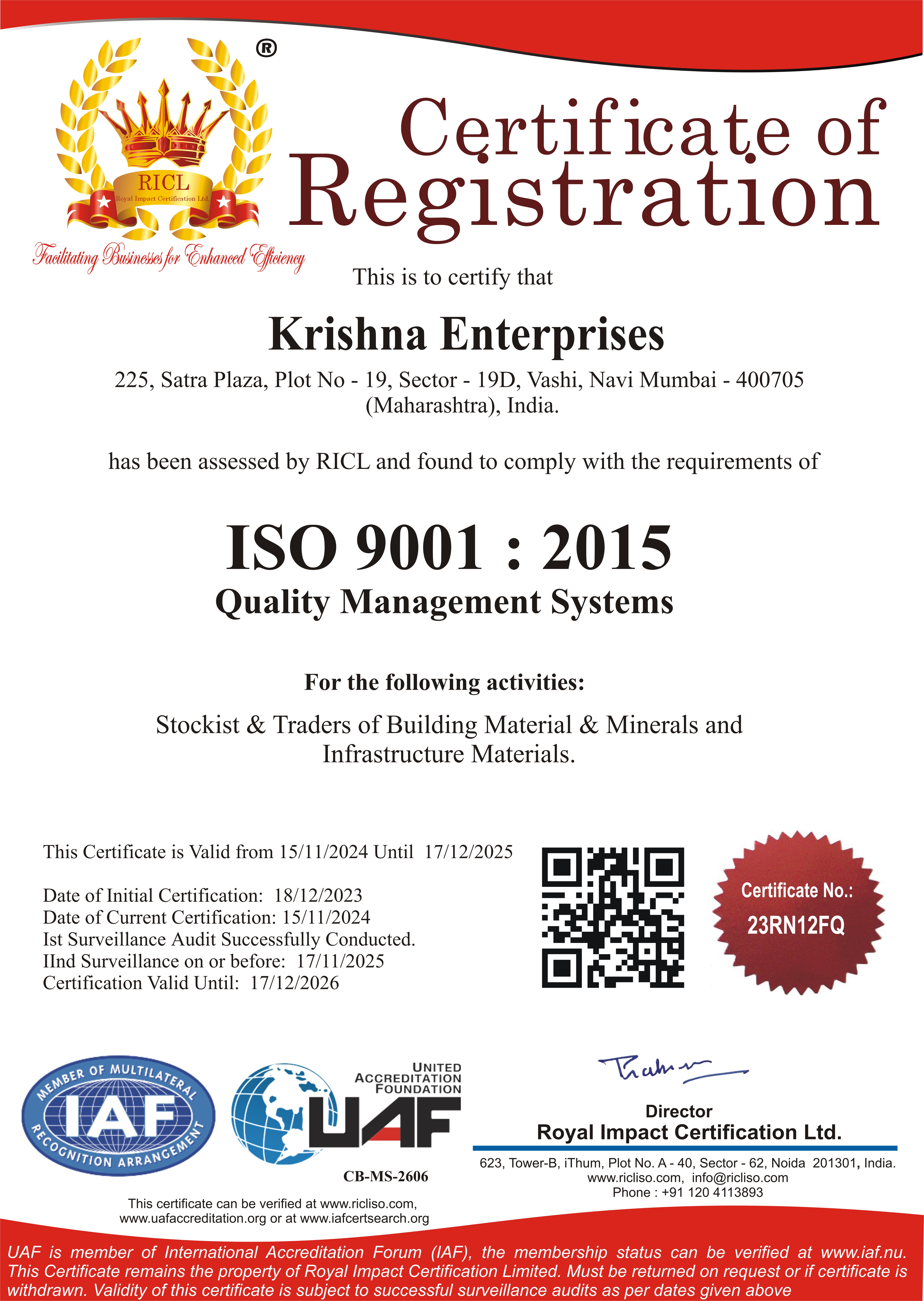 At Krishna Enterprises, quality is the cornerstone of our success. We believe that every grain of sand, every block, and every material supplied should meet the highest standards of strength and reliability. Our products undergo strict quality checks and are sourced from trusted manufacturers to ensure they meet both national and international construction requirements.